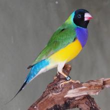 Environ 75 % des diamants de Gould ont le visage noir, tandis que près de 25 % ont le visage rouge. Des études ont montré que les femelles diamants de Gould du nord de l'Australie peuvent influencer le sexe de leur progéniture en choisissant des partenaires en fonction de la couleur de leur tête.