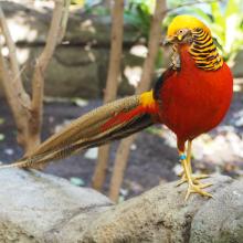 Les mâles arborent un arc-en-ciel de couleurs, de leur crête jaune doré à leurs flancs rouges en passant par leur dos iridescent bleu-vert. Ces couleurs vives sont utilisées pour se faire valoir et impressionner les femelles. Les mâles évitent généralement les prédateurs en courant, mais ils sont également capables de s'envoler rapidement vers le haut pendant de brefs moments.